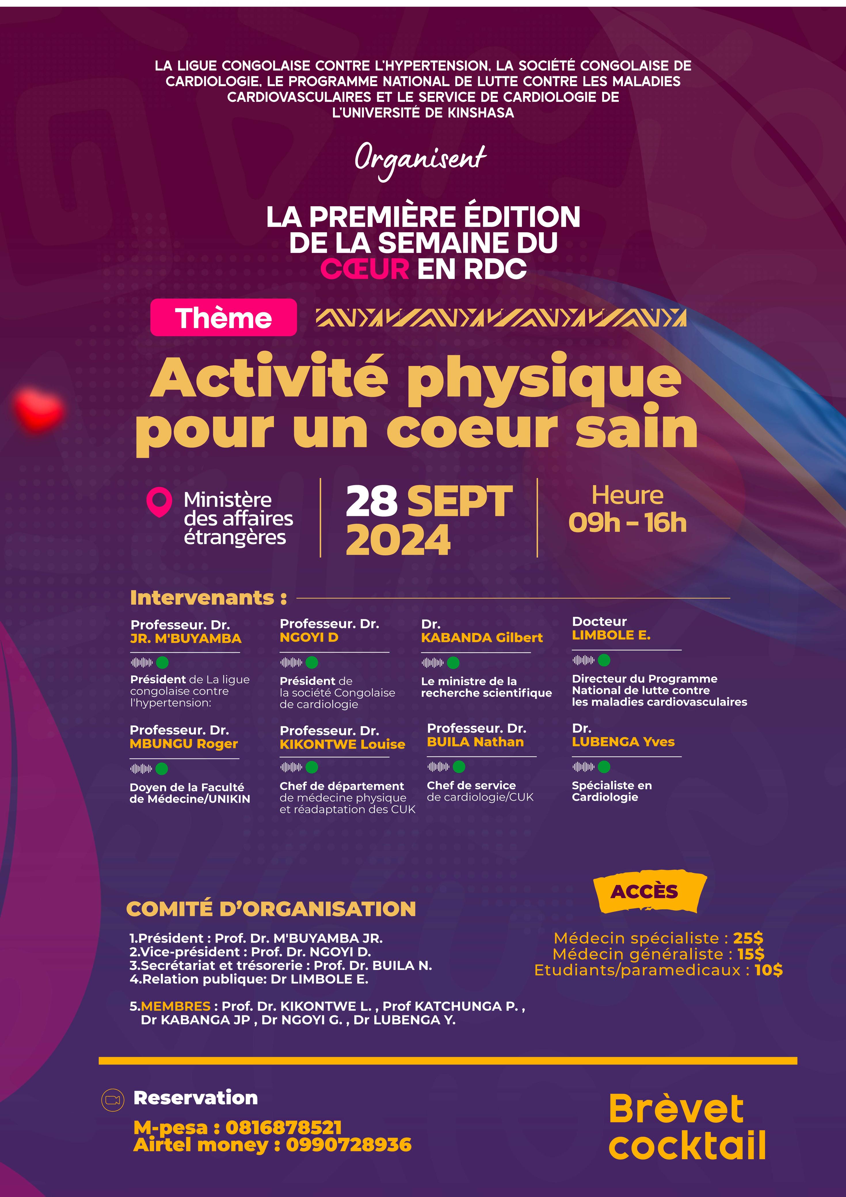La ligue Congolaise Contre l'hypertension, la société Congolaise de Cardiologie, le programme National de lutte contre les maladies cardiovasculaires et le service de cardiologie de l'Université de Kinshasa organisent la première édition de la semaine du cœur en RDC