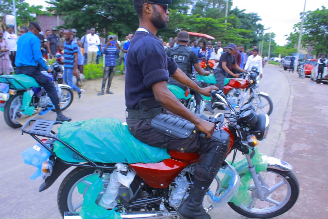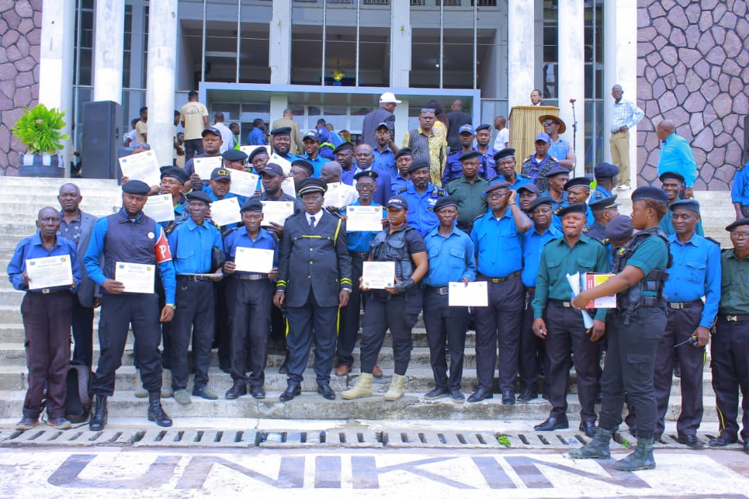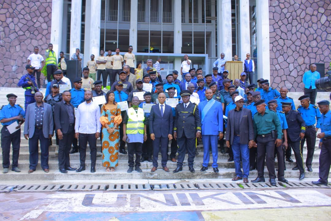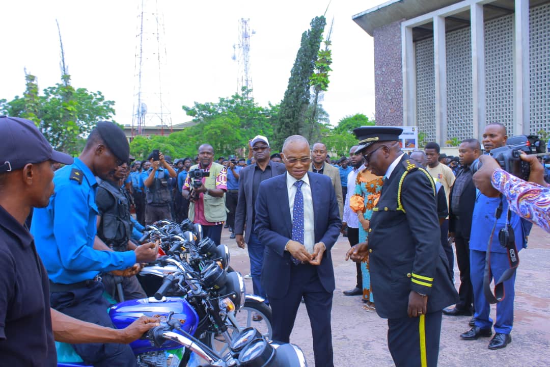 Cérémonie de remise des motos et des matraques électronique à la Police Universitaire de Kinshasa.