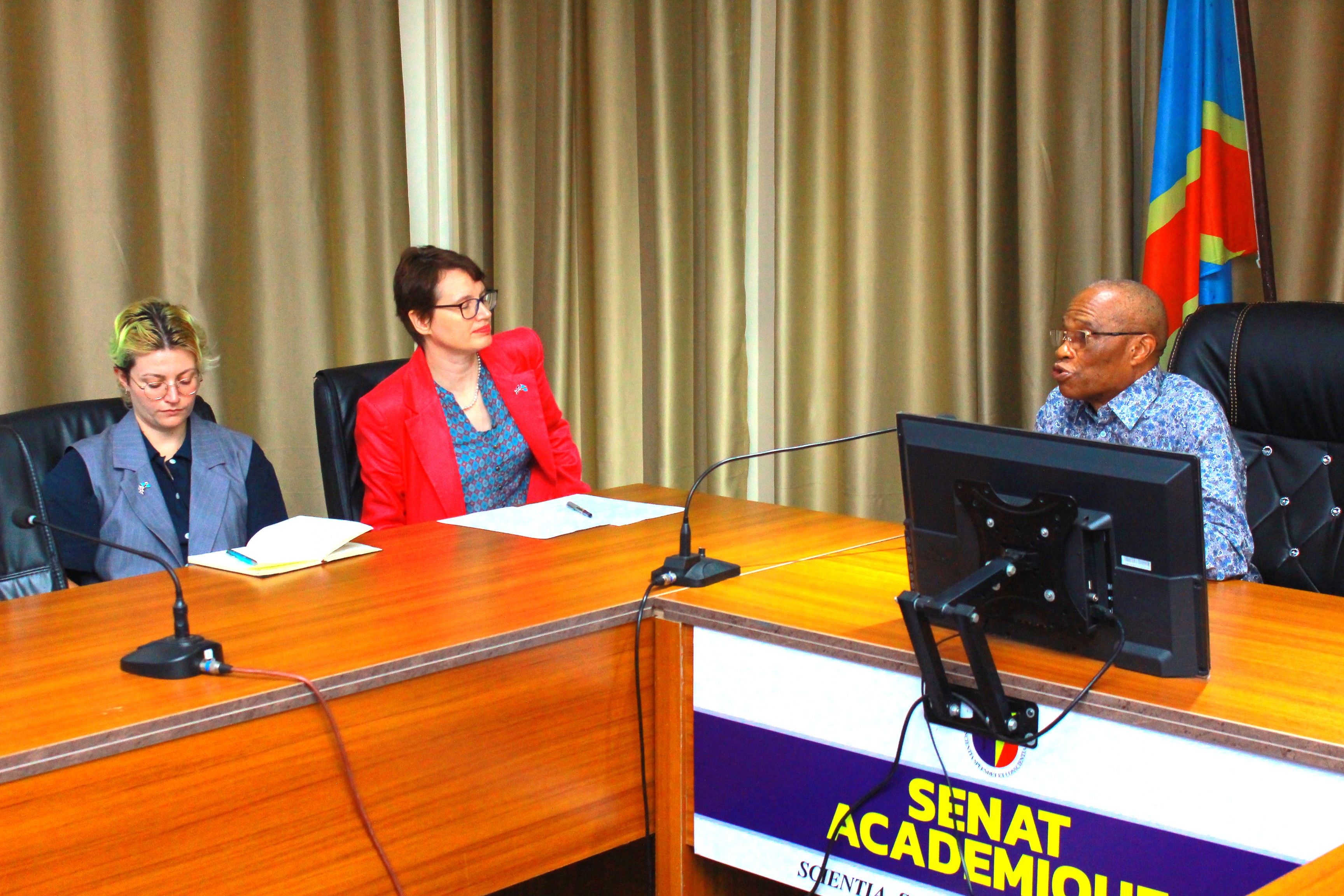 De son côté, le Recteur Jean-Marie KAYEMBE NTUMBA a exprimé sa joie d'accueillir l'Ambassadrice dans son Alma mater. Il a salué en elle « une porteuse d'un message d'espoir et une personnalité qui incite l'UNIKIN à développer davantage la politique du genre ».