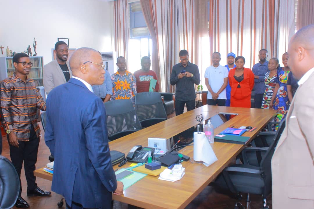 Aujourd'hui premier avril 2024, le Professeur Jean-Marie KAYEMBE, Recteur de l'Université de Kinshasa, a été gratifié d'un présent en reconnaissance de son remarquable mandat à la tête de l'institution ainsi que de son titre reçu récemment en tant qu'Ambassadeur de l'Université de Liège. Il est le premier Recteur congolais à recevoir cet honneur. Le trophée, représentant un arc prêt à être tendu, symbolise une communication efficace à l'échelle internationale et la vigueur.