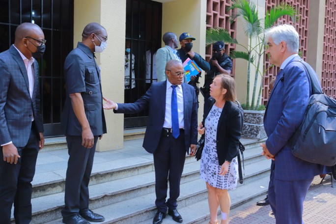 Reçue par le Recteur de l’Université de Kinshasa, le Professeur Docteur Jean-Marie KAYEMBE NTUMBA accompagné du Secrétaire Général à la Recherche, le Professeur TSHIMPI et du Secrétaire Général Administratif, le Professeur LAPIKA, la délégation belge et les membres du Comité de Gestion de l’Université de Kinshasa précités ont eu une séance de travail dans l’une de plus belles salles de conférence des Universités de la République Démocratique du Congo en général et de l’Université de Kinshasa en particulier, « le Sénat Académique » avant d’entamer les différentes visites dans les endroits ci après: